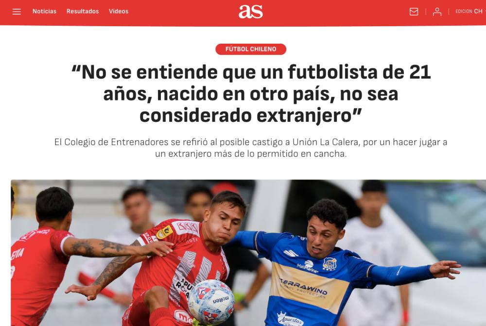 Lo anterior fue replicado por el Diario As Chile, que recalcó el punto de vista del Colegio en torno a lo inexplicable que resulta que un futbolista foraneo de 21 años no sea considerado cupo de extranjero.